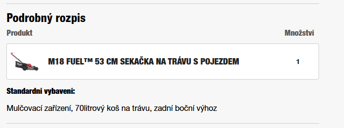 STANDARDNÍ VYBAVENÍ | Mulčovací zařízení, 70litrový koš na trávu, zadní boční výhoz |