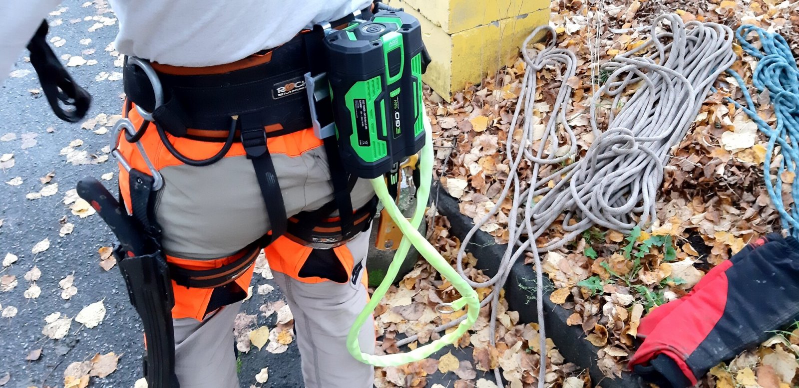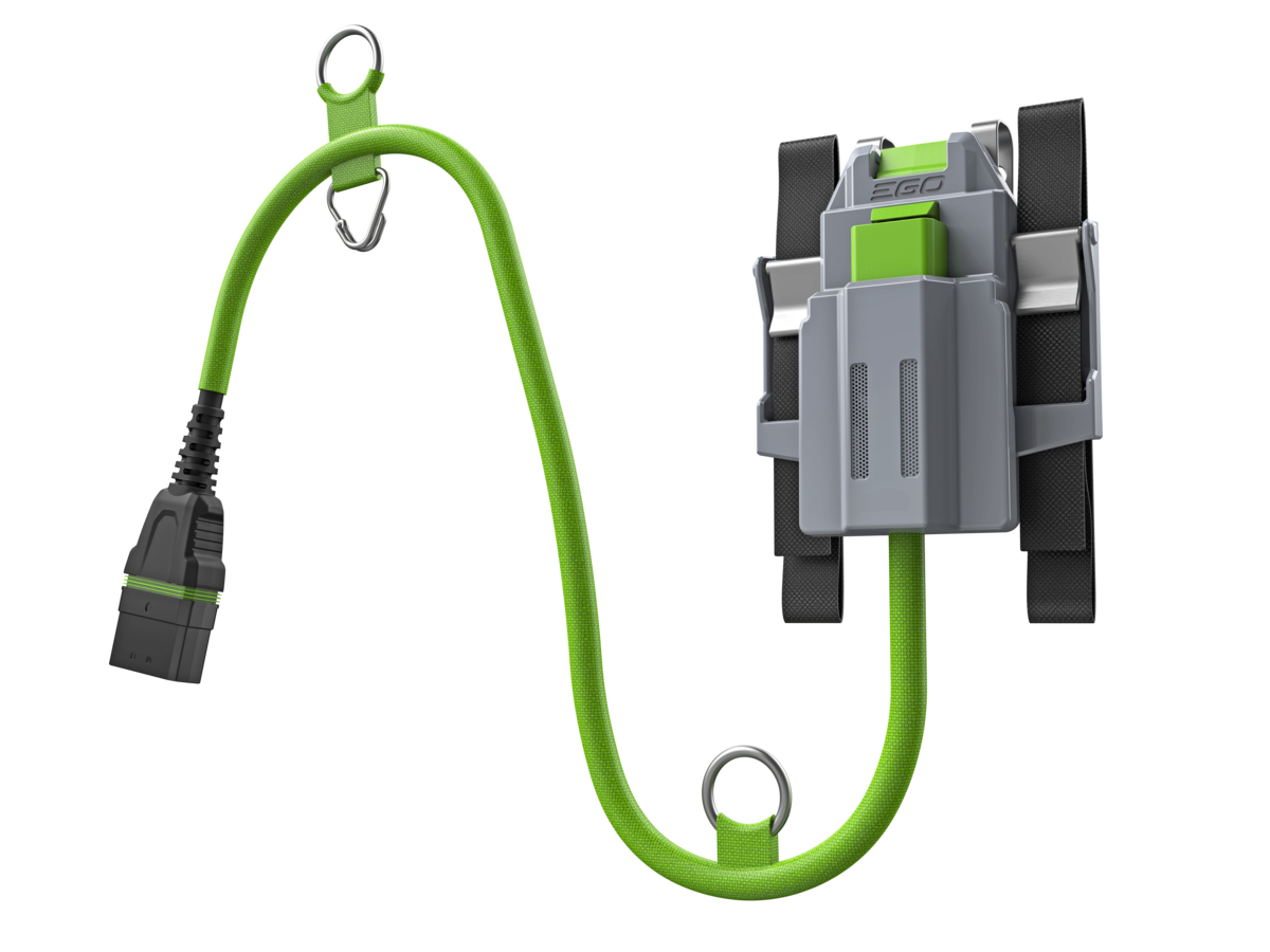 Je všeobecně známo, že čím větší baterie, tím větší výkon, delší pracovní doba, ale bohužel i větší hmotnost baterie. Na druhou stranu zase čím lehčí je stroj, tím komfortnější a snadnější je jeho obsluha. Např. baterie s kapacitou 5,0 Ah váží 2,2kg a např. baterie s dvojnásobnou kapacitou 10,0Ah váží již 3,4kg. To je hmotnost, která při dlouhodobější práci stojí za to převést z rukou na záda. Proto existuje pohodlnější způsob maximálního využití energie bez zbytečného zatěžování rukou. Díky ergonomickému profesionálnímu opaskovému nosiči baterií přemístíme hmotnost baterie na bedra uživatele a stroj se stává podstatně lehčím a ovladatelnějším. Nosič je opatřen kompaktním lože na baterii a závěsem na opasek uživatele. Proti vysunutí nosiče z opasku slouží pojistné řemínky. Pro případ možnosti napájení strojů z kategorie EGO Power+ a EGO Pwer+ Professional je nutné dokoupit adaptér ADB1000. Tímto alternativním způsobem připojení baterie ke stroji pomocí kabelu a adaptéru dochází k rozložení hmotnosti baterie na bedra uživatele a práce se strojem je ještě pohodlnější a snadnější. Prostě opaskový nosič odebere veškerou váhu baterie z rukou, což poskytuje uživateli významně vyšší komfort a stabilitu použití, zvláště pak při použití naší největší baterie s extra dlouhou pracovní dobou. Pro praktické odložení lze jako příslušenství dokoupit praktický závěs ne zeď AWH1500, na který lze zádový nosič s postrojem bezpečně zavěsit. Opaskový nosič ocení rovněž uživatelé z řad profesionálů či zaměstnanců úklidových služeb, komunálních služeb či údržby veřejné zeleně.