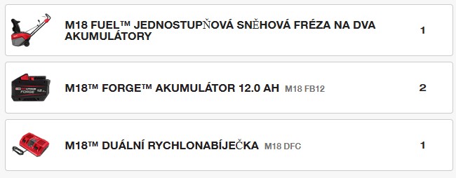 Nejvýkonnější jednostupňová sněhová fréza ve své třídě Milwaukee M18 F2SSBL-122 se záběrem 53 cm, vzdálenost odhozu 10,7 m, hloubka odklidu 30,5 cm. Obsah balení: stroj, 2x akumulátor 12.0 Ah, duální rychlonabíječka.