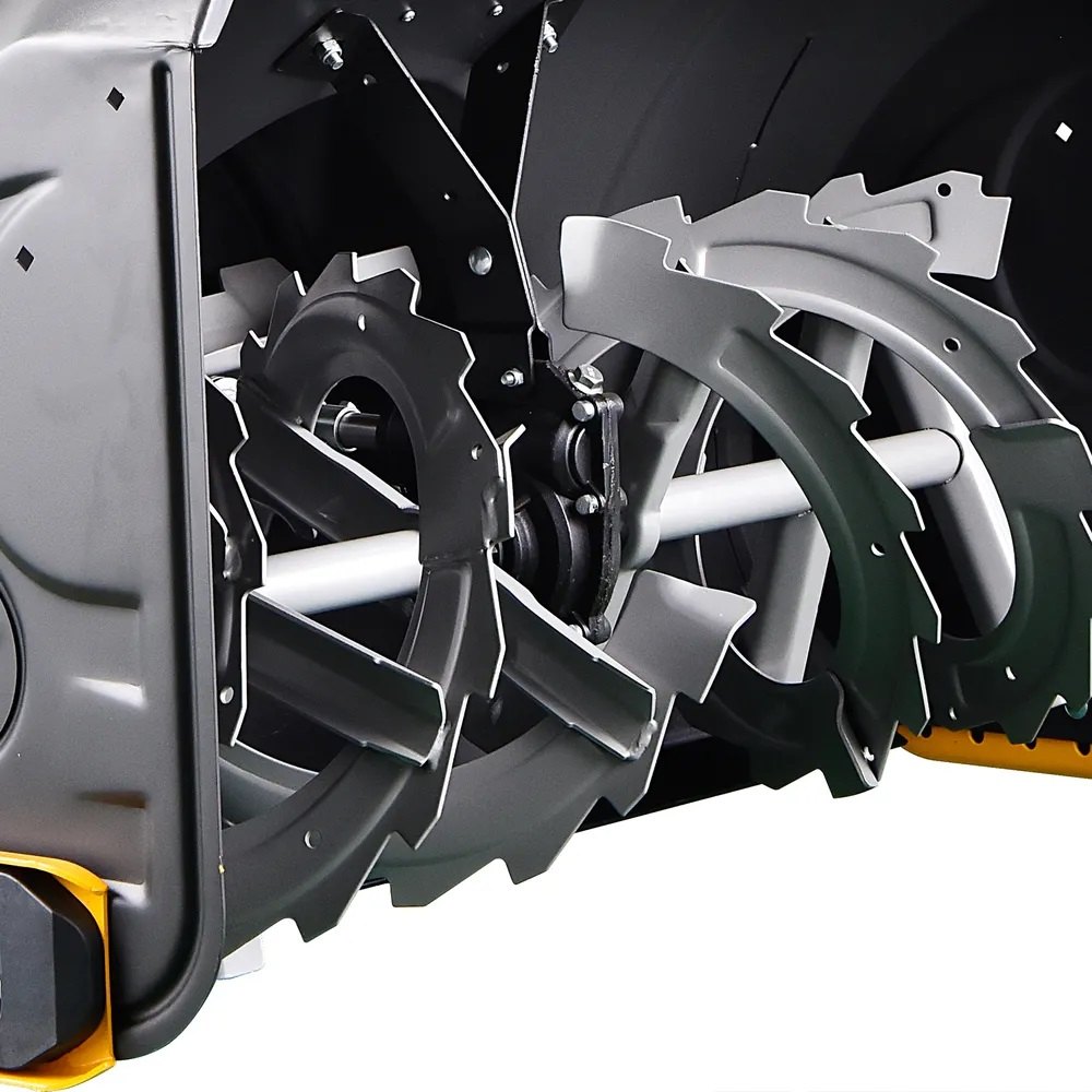 • Bezpečnostní prvky: Koupě této sněhové frézy zahrnuje také výhody v oblasti bezpečnosti. Je vybavena různými bezpečnostními prvky, které minimalizují riziko úrazu, jako například kryt se snímáním, který zabraňuje přístupu do rotujících částí stroje při provozu.