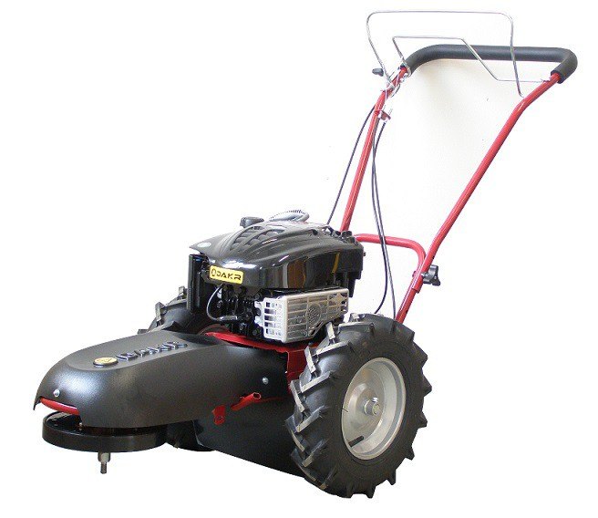 Pohonná jednotka má dvě rychlosti dopředu, osvědčený spolehlivý motor a velmi snadné intuitivní ovládání. Obrovskou výhodou je náprava, která má vlastnosti diferenciálu s možností uzavření obou kol. Proto se se strojem velmi snadno zatáčí, ale v záběru při sečení je veden rovně a neuhýbá. Samozřejmostí jsou klasická foukaná kola o průměru 40 cm s šípovým vzorkem, která mají v terénu dobrý záběr a snadno přejíždí nerovnosti. Řidítka lze výškově nastavit. Při práci pod nízkými stromy je lze chytnout pouze jednou rukou a jít vedle sekačky, mimo stromy, což u strojů s klasickými řidítky není možné. Přestavba na mulčovač se provádí povolením jednoho šroubu, kterým se uvolní žací buben a místo něj se třemi šrouby přichytí mulčovací nástavec, což trvá asi 5 minut.