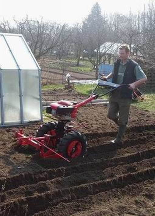 Tato sada slouží k připravení hrobků k sázení brambor. Po nasázení brambory touto sestavou přihrneme. Nosič se připojuje před stroj do závěsného zařízení BZN. Závěsné zařízení BZN je otočeno závěsem směrem dopředu a hrobkovací radlice jsou malotraktorem tlačeny.