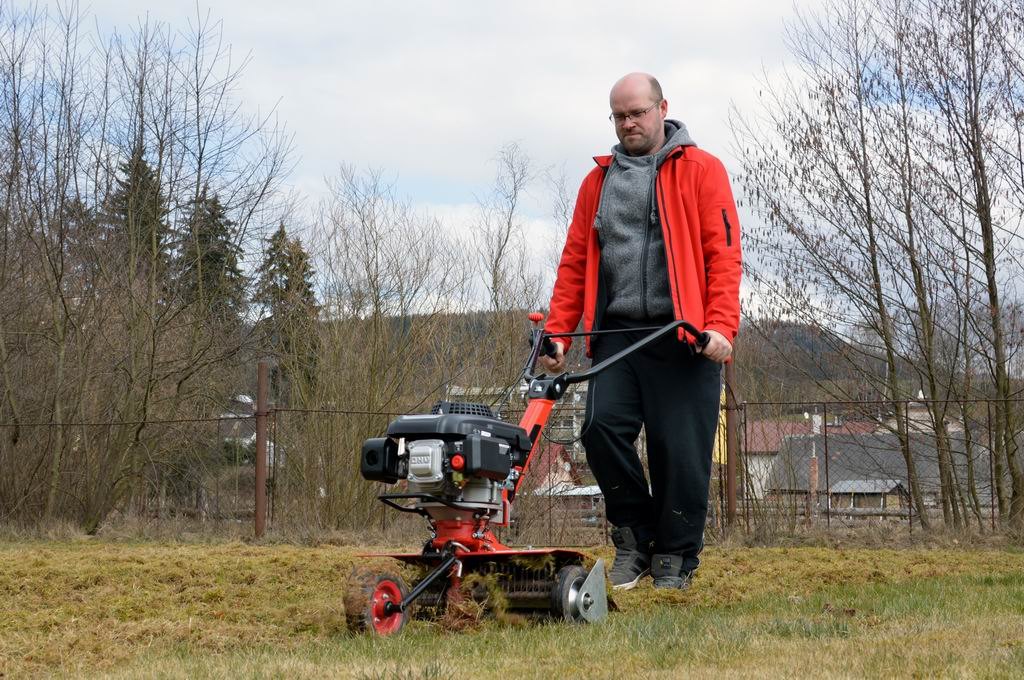 Pokud již vlastníte rotační plečku, pomocí tohoto přestavbového setu, který obsahuje dvě unášecí klece s osovým čepem, sadu vyčesávacích pružin, sadu vertikutačních nožů, boční vodicí kola, sklopné startovací opěry, bezpečnostní kryt a zadní brzdicí ostruhu, snadno přestavíte na provzdušňovač/prořezávač trávníků. Ostatní potřebné díly, tedy převodovku, přední vodicí kolo, držák radličky a zajišťovací kolíky, použijete ze své rotační plečky.