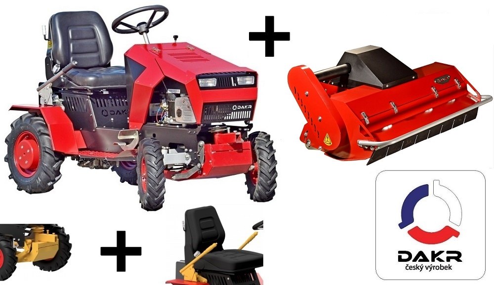 Motor o výkonu 15,5 Hp, hydrostatická převodovka, zvedání nástavců z místa obsluhy, možnost bohatého příslušenství.