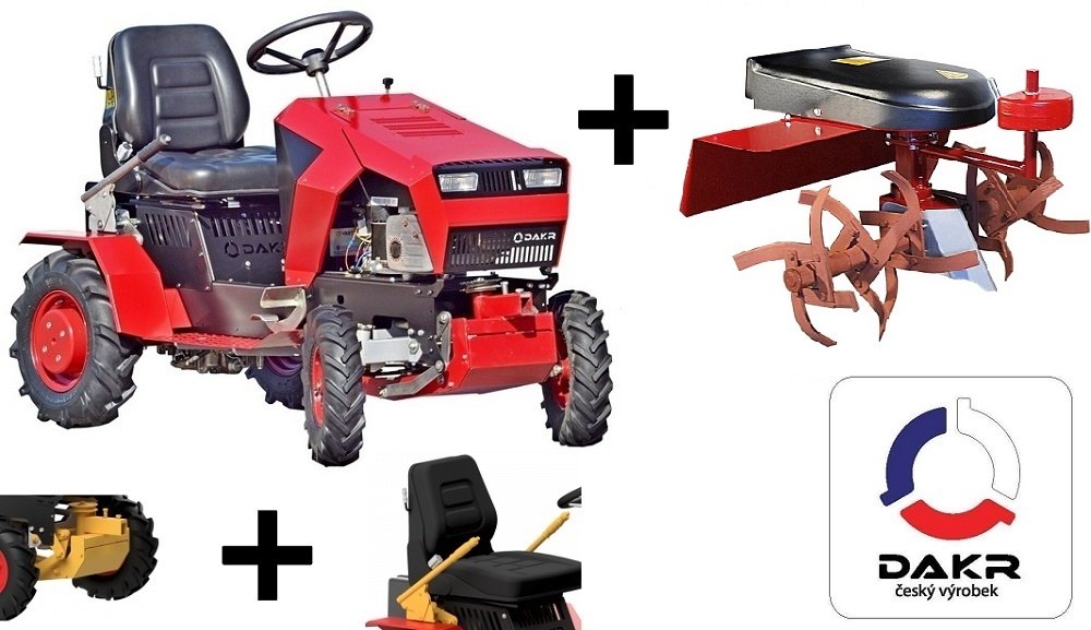 Motor o výkonu 15,5 Hp, hydrostatická převodovka, zvedání nástavců z místa obsluhy, možnost bohatého příslušenství.