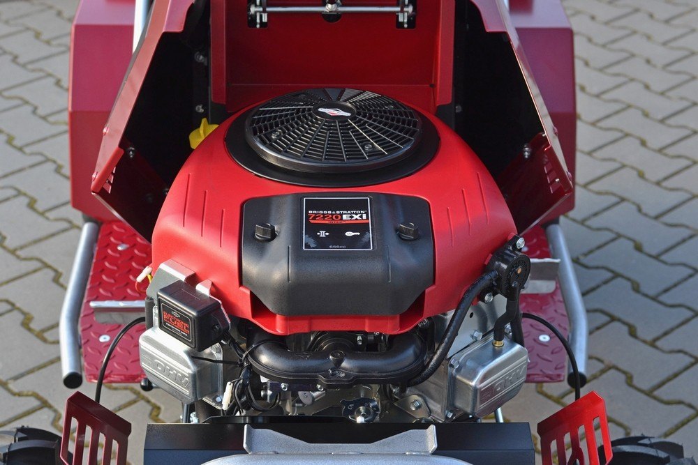 komunikacích, má dvouválcový motor Briggs&Stratton EXi 7220 o výkonu 22 Hp s kroutícím momentem 42 Nm. Hydrostatická převodovka TuffTorq K72A s kroutícím momentem 549 Nm a jmenovitou tažnou sílou 2.000 Nm.