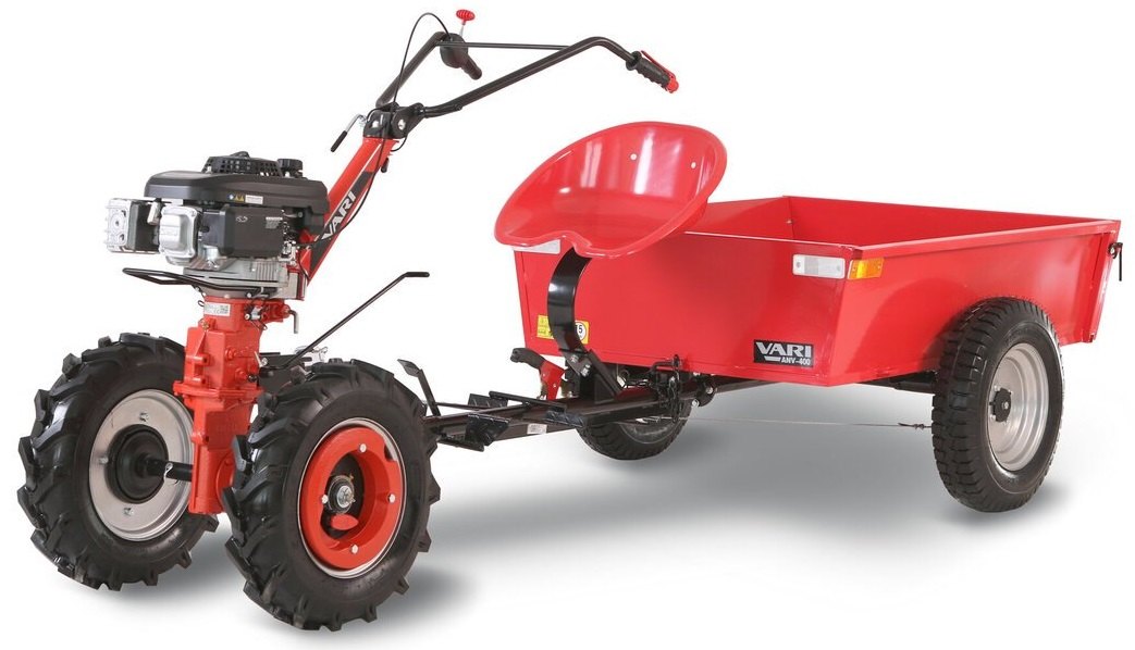 Stavebnicový malotraktor VARI IV GLOBAL je spolehlivý pomocník pro zahrádkáře a farmáře hlavně při obdělávání půdy a přepravu nákladu. Převod pohonu mezi motorem a převodovou skříní zajišťuje odstředivá spojka, která se automaticky sepne vždy při přidání plynu na vodicích rukojetích. Nové vodicí rukojeti jsou odpružené, tudíž obsluha cítí minimální vibrace do rukou. Jsou stavitelné výškově i stranově z místa obsluhy a najdeme na nich bezpečnostní vypínač zapalování, který v případě nehody či pádu obsluhy automaticky zastaví stroj.