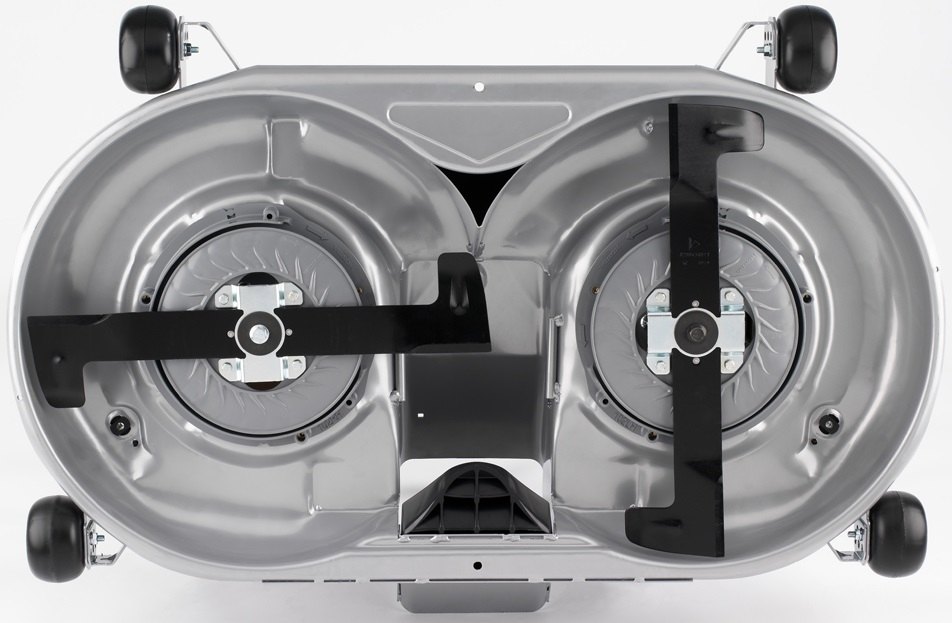 Pro žací ústrojí o šíři záběru 102 cm a více se u mezinápravových sekacích zařízení u traktorů Honda používá výhradně synchronizované uspořádání dvou žacích nožů. Tak aby nože vzájemně pokryly celkový záběr, je nutné, aby jejich délka v součtu byla větší než záběr. Díky překrývání rotačních výsečí je zaručeno perfektní pokrytí celé travní plochy bez možnosti vynechání neposekaných míst. Jak ovšem zajistit, aby se při vzájemném otáčení v jedné rovině nedostaly do vzájemného kontaktu? Spolehlivé a bezpečné časování rotace jednotlivých nožů o 90° vůči sobě je zajištěno ozubeným řemenem. Nehrozí tak nebezpečí kolize sekacích nožů a případná destrukce. Navíc je mnohem lépe optimalizován průtok vzduchu do sběrného boxu a lepší sběrací schopnost traktoru.