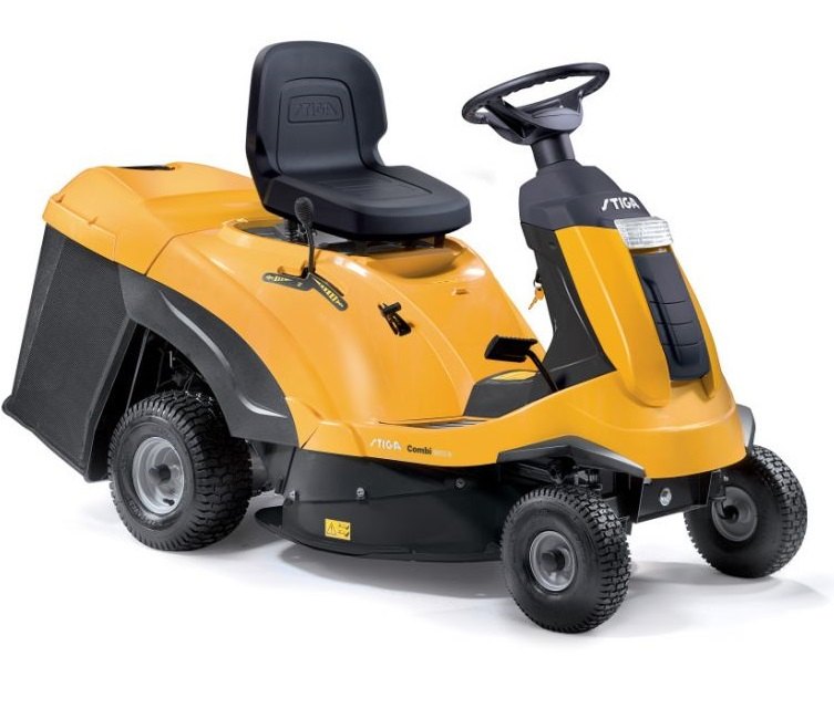 Zahradní traktor s košem Stiga Combi 3072 H se záběrem 72 cm a maximálním výkonem 13,5 HP, traktor je vybaven 170 l sběrným košem, je vybaven 11" koly vpředu a 15" vzadu