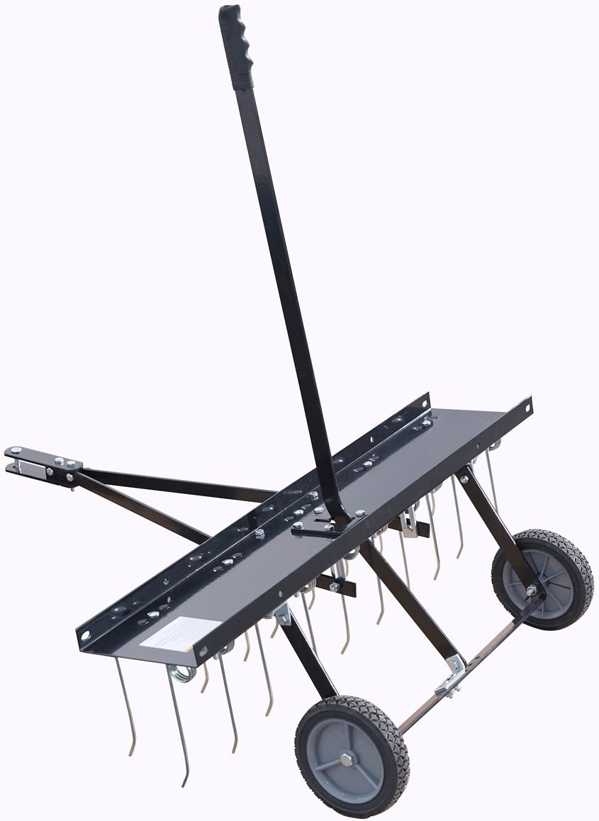 • přívěsné hrábě vhodné na odstranění staré trávy, listí a mechu z trávníků