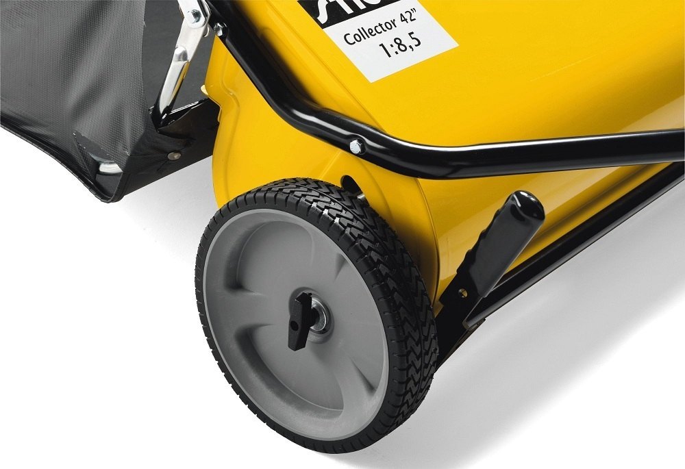 Díky široké škále doplňků pro Ridery Park se stávají společníkem na celý rok. Tažený, s 8,5:1 kolo-kartáč rotací. Naplněný zásobník lze snadno vyprázdnit z místa řidiče. Sběrač je vybaven hliníkovými koly a odolným zásobníkem unoženým na nosítkové konstrukci.