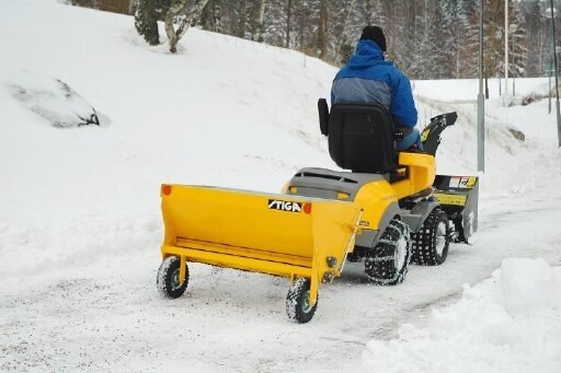 Sypač písku STIGA je robustní stroj s pracovním záběrem 100 cm. Posypový válec je poháněn elektromotorem ovládaným z místa obsluhy.