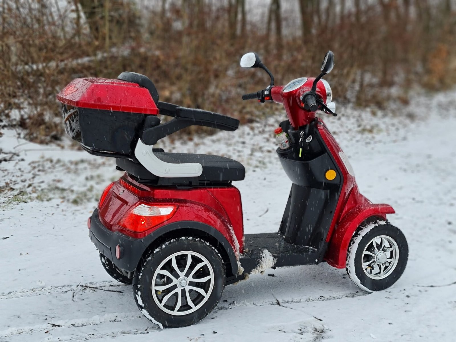 Selvo 41000Li "lithium": Varianta s kvalitní lithiovou baterií (LiFePO4), která nabízí až 10x delší životnost a je možné ji vyjmout ze stroje a nabíjet zvlášť. Pokud plánujete cestování v desítkách kilometrů nebo chcete ušetřit na výměně baterií, volte tuto variantu. Brzdy jsou 2 pákové nezávislé, přední hydraulické kotoučové. Tato varianta je navíc osazena velmi účinnými LED světly. Více v popisu. Tento model naleznete: ZDE