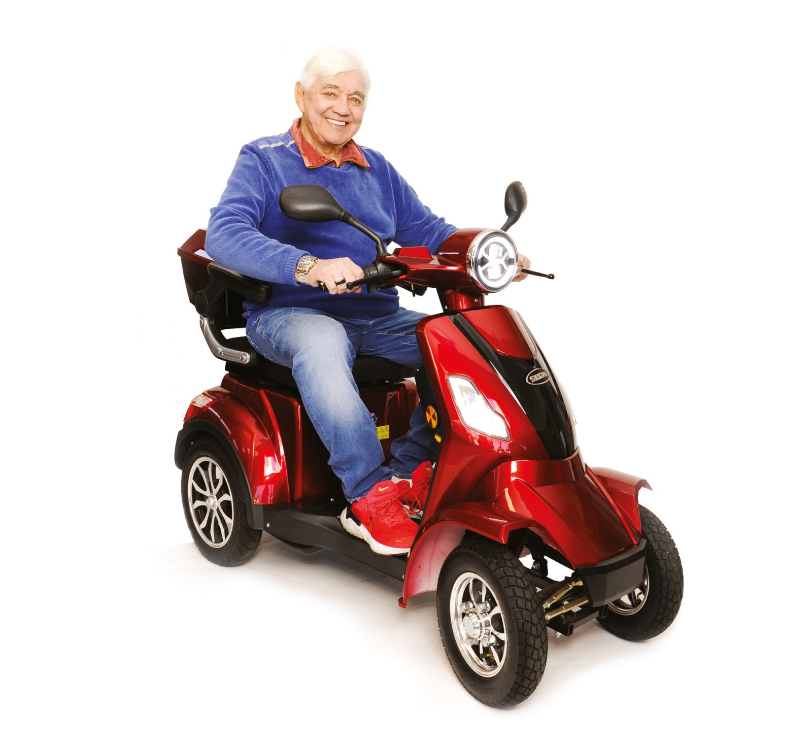 Selvo 41000EB "el.brzda": Varianta s automatickou (elektromagnetickou) brzdou. Zabrzdí když pustíte "plyn" i když nepoužijete páčku brzdy. Necouvne při rozjezdu v kopci. Celkem 3 nezávislé brzdy. EB varianty mají max. rychlost sníženou na 20km/h. Více v popisu. Tento model naleznete: ZDE
