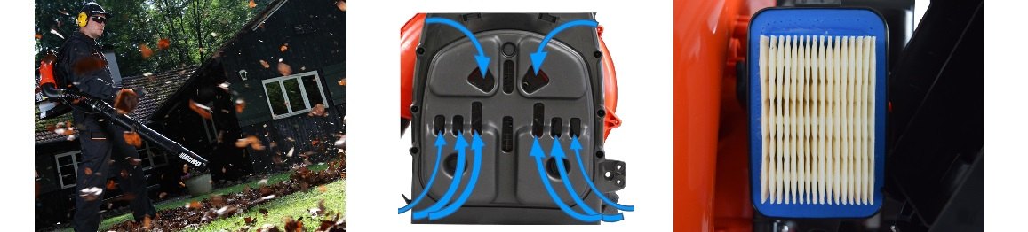 Skládaný velkoobjemový vzduchový filtr dobře chrání motor od nečistot a prachu.