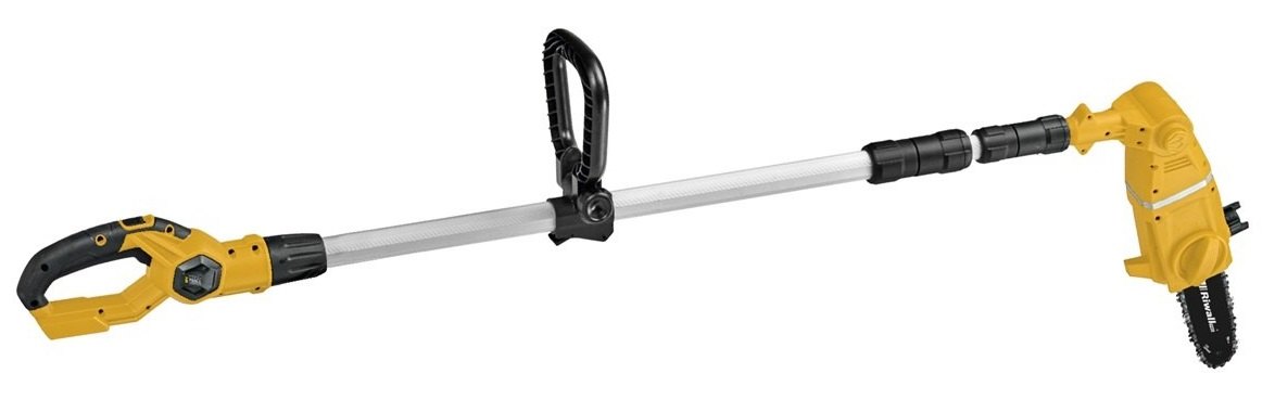 elektronikou a ochrannou jednotlivých článků při nabíjení * v balení obdržíte výkonnou baterii o kapacitě 4 Ah a nabíječku, která zvládne nabít akumulátor za 90 minut * skvělý poměr ceny a výkonu * aku technika je nejpohodlnější cesta údržby vaší zahrady-vysoký výkon, snadné startování pouhým stiskem tlačítka, tichý chod, žádné emise ani otravný kabel, žádný spotřební materiál (olej, benzín, svíčky, filtry apod.) * otočná hlava do 7 pozic s integrovaným hákem na stahování větví * snadné napínání řetězu otočným knoflíkem bez použití nářadí * snadná vizuální kontrola stavu oleje * ergonomická protiskluzová rukojeť s velkým bezpečnostním spínačem pro pohodlnou práci v rukavicích, nastavitelné madlo * celková délka téměř 2,8 m dovoluje řezat i vysoko položené větve * teleskopická vodící tyč z lehké a pevné hliníkové slitiny * úchyt na ramenní popruh (popruh je součástí dodávky) * baterie v zadní části pro lepší vyvážení stroje * doba běhu cca 30 min (může se lišit v závislosti na zátěži) * hlava s pilou lze snadno sundat a místo ní nasadit hlavu s plotostřihem RACC00085 * baterii lze kombinovat i s dalšími stroji Riwall z programu 20 V * 2 roky plná záruka na baterii – v případě problému bude automaticky vyměněna za novou