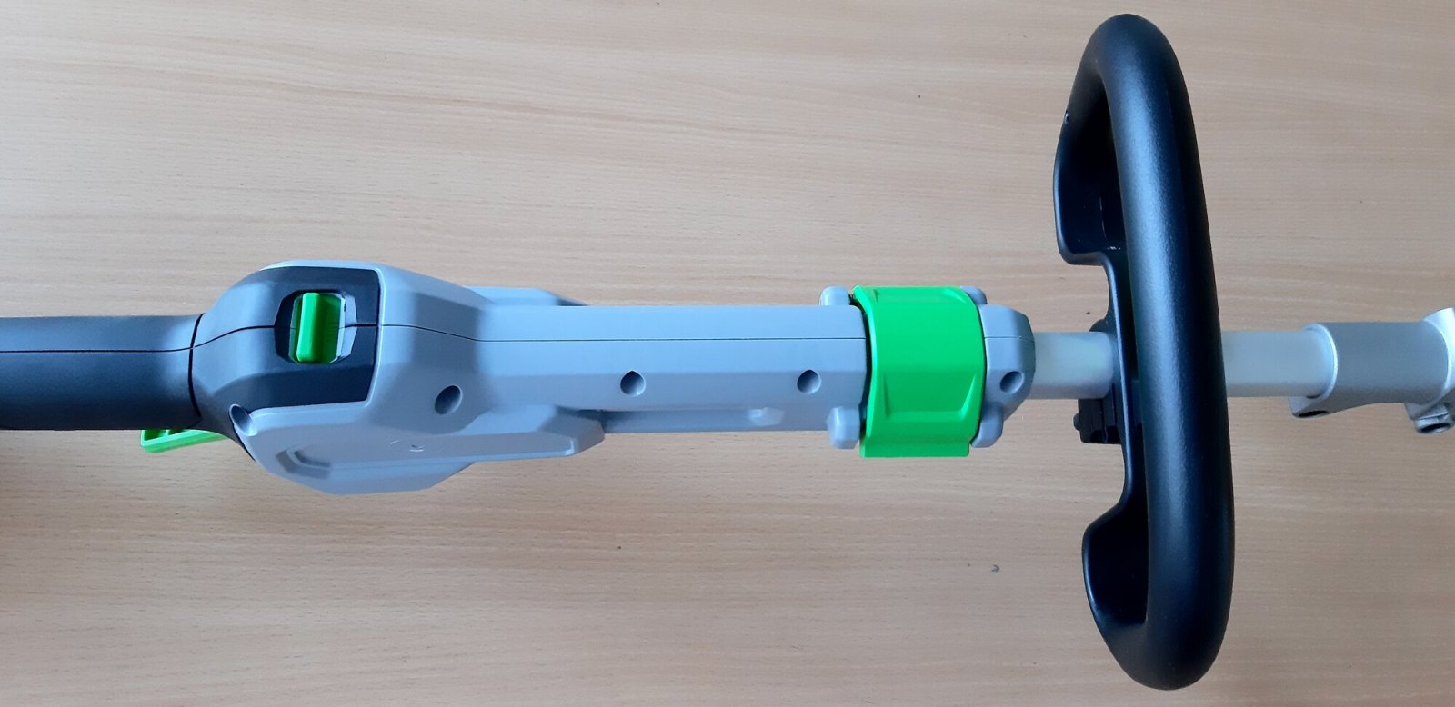 Tubus vyžínače lze po odjištění prodloužit nebo zkrátit o cca 25 cm tak, aby se svojí délkou lépe přizpůsobil výšce postavy a délce rukou uživatele. Ideální pracovní polohu stroje si tak snadno zvolí jak žena drobnější postavy, tak i muž s postavou basketbalisty. Tomu přispívá i posuvná oblouková ovládací rukojeť. Po uvolnění šroubu na skládacím kloubu je možné stroj složit do přepravní a skladovací polohy. Nylonová žací struna o ∅ 2,4mm namotaná na cívce poloautomatické strunové hlavy se při práci v případě potřeby automaticky prodlouží pouhým poklepem strunovou hlavou o zem. Když je zásoba struny na cívce spotřebována, její doplnění je velmi snadné. Průlomová technologie EGO PowerloadTM zcela odstraňuje mnohdy problematické doplňování náhradní struny a automaticky náhradní strunu doplní a navine za vás během několika vteřin. Stačí provléci náhradní strunu strunovou hlavou, stlačit zelené tlačítko PowerloadTM a nechat systém, aby strunu navinul sám a proces dokončil. Spolehlivý systém tak umožní pracovat bez přerušení i méně technicky zdatným uživatelům a včas dokončit svoji práci. Dokonalá ochrana před odlétávající trávou je zajištěna díky rozměrnému a robustnímu bezpečnostnímu krytu. Na pohon vyžínače lze použít jakoukoliv baterii ze sortimentu EGO a např. baterie 2,5Ah vám umožní pracovat nepřetržitě 30 minut a s baterií 5,0Ah dokonce hodinu. Naše lithiové baterie EGO Power+ 56V Arc Vám poskytnou dostatek energie pro pohon výkonného a účinného bezuhlíkového motoru pro dokončovací práce při likvidaci travního porostu kolem zídek, plotů, stromů, keřů a jiných překážek. Díky možnosti volby rychlosti otáčení žací struny Vás sousedé při práci ani neuslyší a Vy díky nízké hmotnosti a dokonalému vyvážení stroje ani nepocítíte únavu.