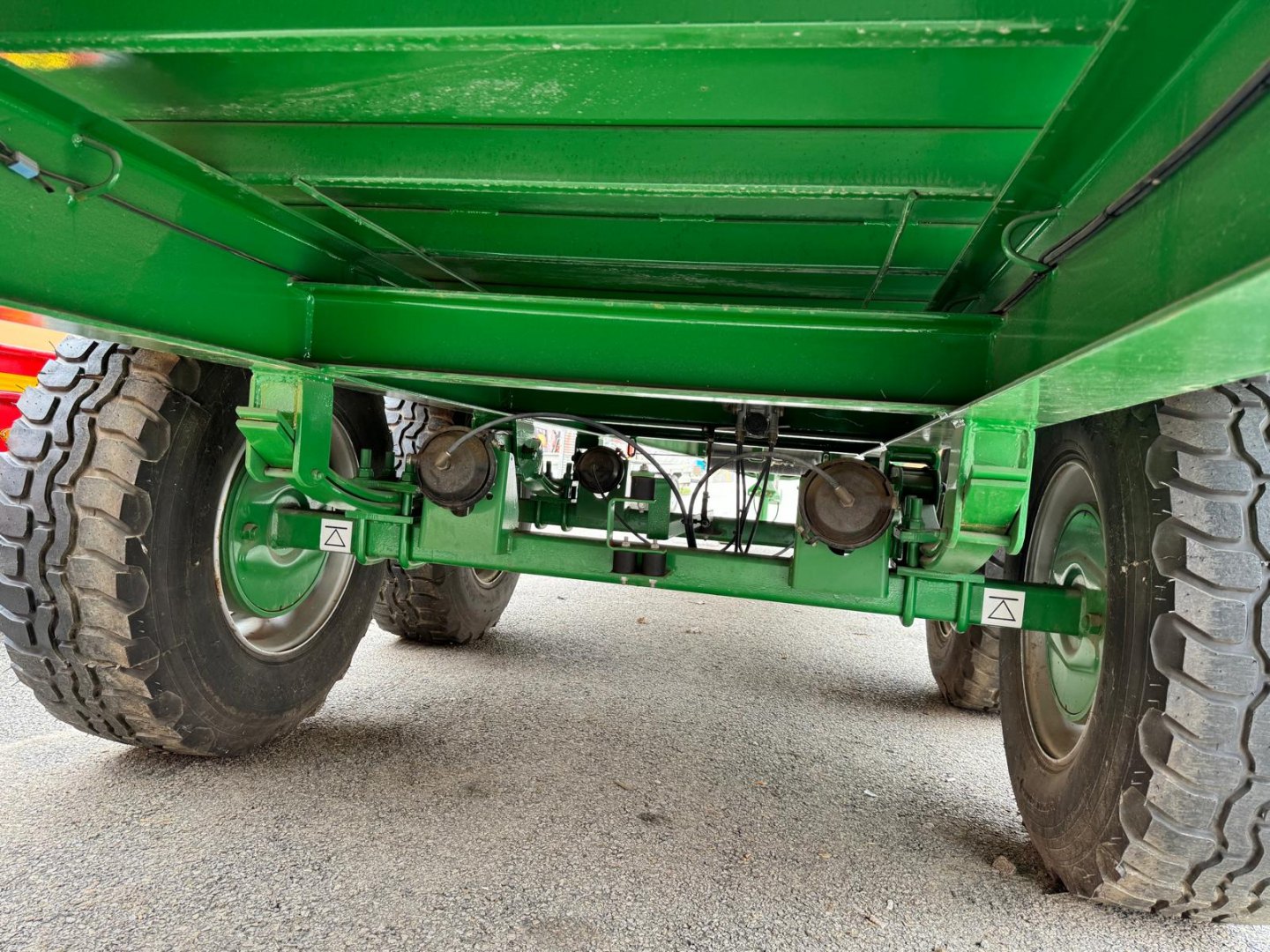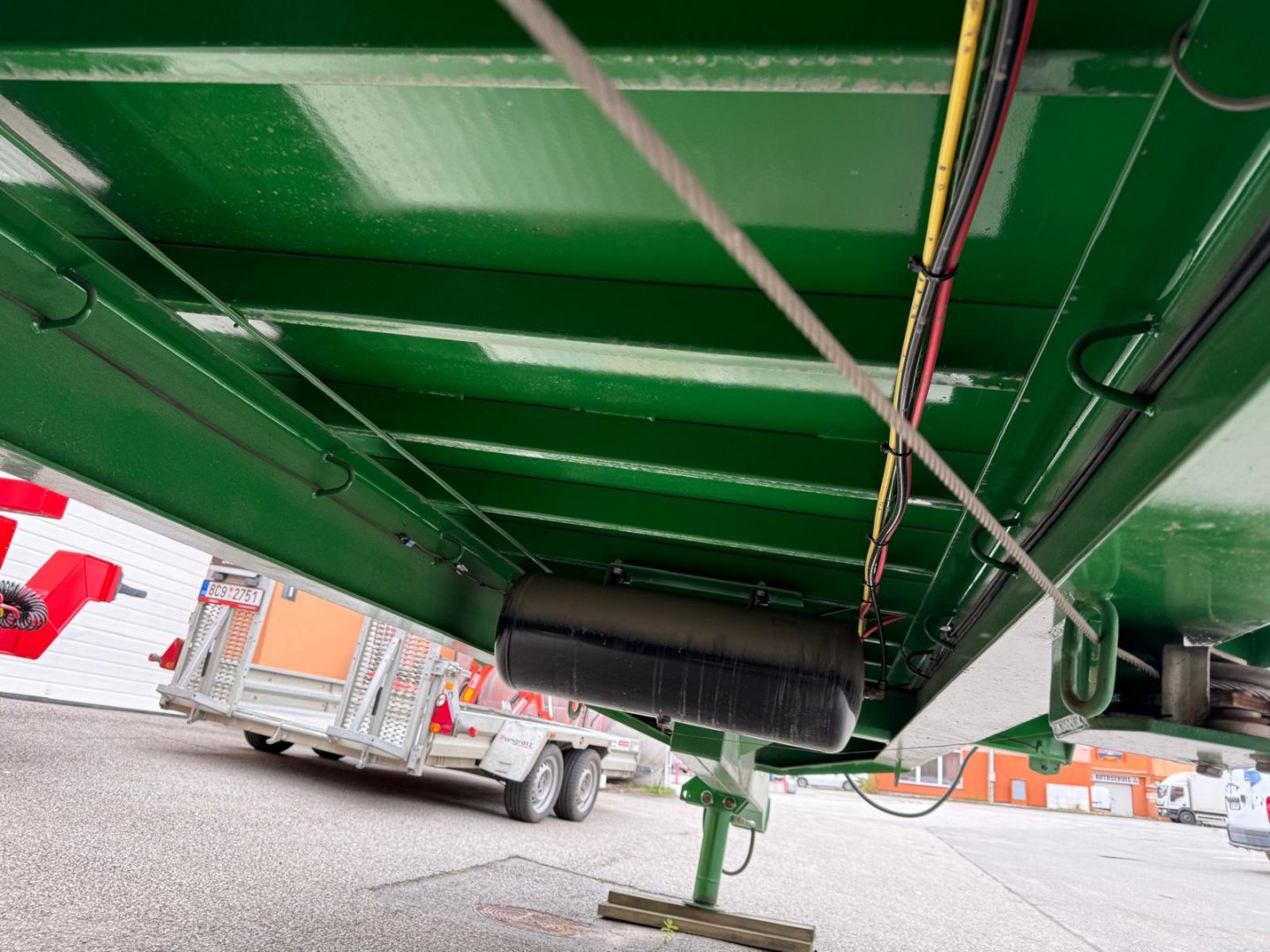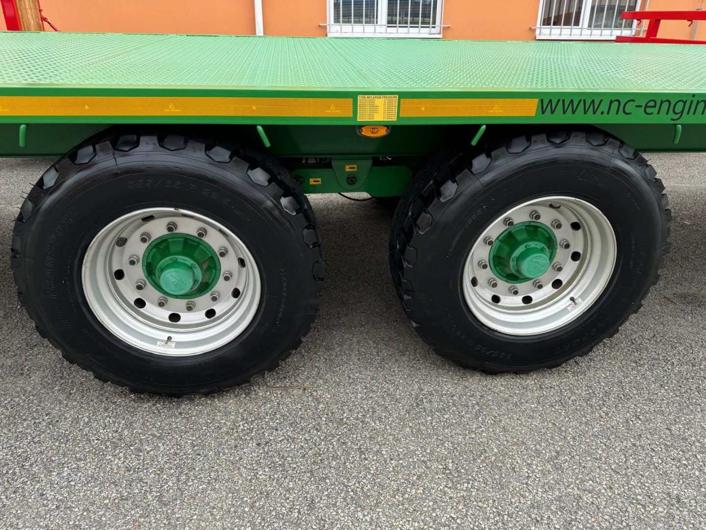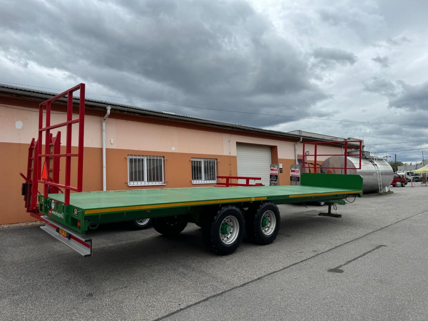 Celková nosnost 11.560 kg, celková hmotnost: 16.000 kg, hmotnost přívěsu: 4.440 kg Celková délka: 11.260 mm, celková šířka: 2.440 mm, celková výška s čely na balíky: 3.000 mm, rozměr ložné plochy: 9.750 mm x 2.440 mm, povrch ložné plochy z 4 mm silného žebrového plechu, výška závěsu 485 mm, bubnové 10ti čepové nápravy ADR 90 mm s mechanickým odpružením do 40 km/h, dvouokruhové vzduchové brzdy na všech nápravách se snímačem zatížení, pneumatiky – rozměr 385 x 65 x 22,5, tažné zařízení K80 odnímatelné, elektroinstalace 12 V – LED osvětlení, výškově nastavitelná hydraulická podpěrná noha, přední a zadní nezalomené držáky pro převoz balíků. Barevné provedení zelená.