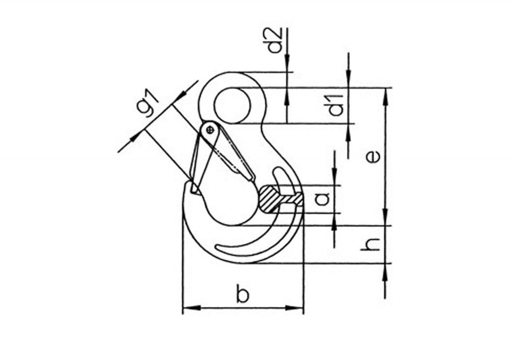 Koncový hák s okem a pojistkou.