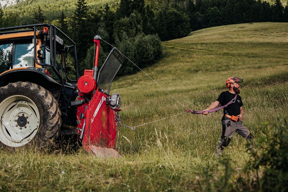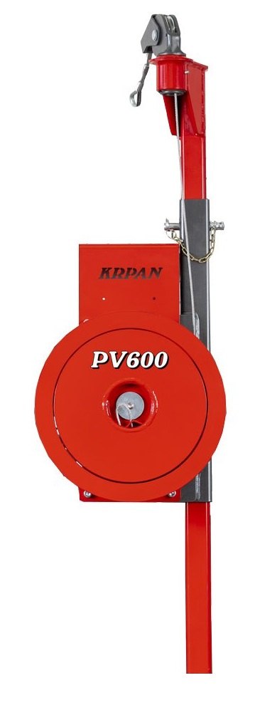 Pomocný naviják KRPAN PV 600 byl navržen jako přídavné zařízení k těžebním navijákům a výrazně usnadňuje práci v lese. Pomocný naviják je poháněn vlastním hydraulickým motorem, který je pomocí dvou rychlospojek připojen přímo k traktoru nebo jinému pracovnímu stroji. Výškově nastavitelné teleskopické rameno má v horní části otočnou kladku.